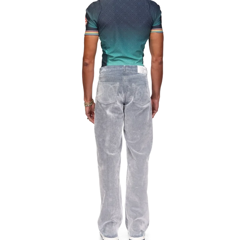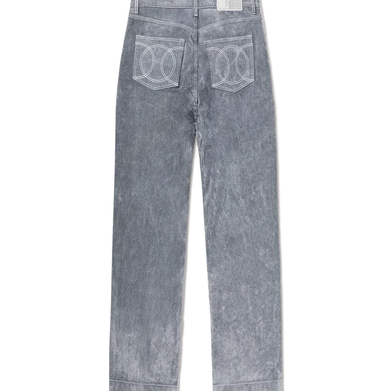 Die Peach Texture Jeans ist ein Modell mit geradem Bein aus einem Baumwollmischgewebe. Mit vergoldeten Markenbeschlägen, Reißverschluss, Vorder- und Gesäßtaschen, einem Marken-Lederpatch und Gürtelschlaufen.