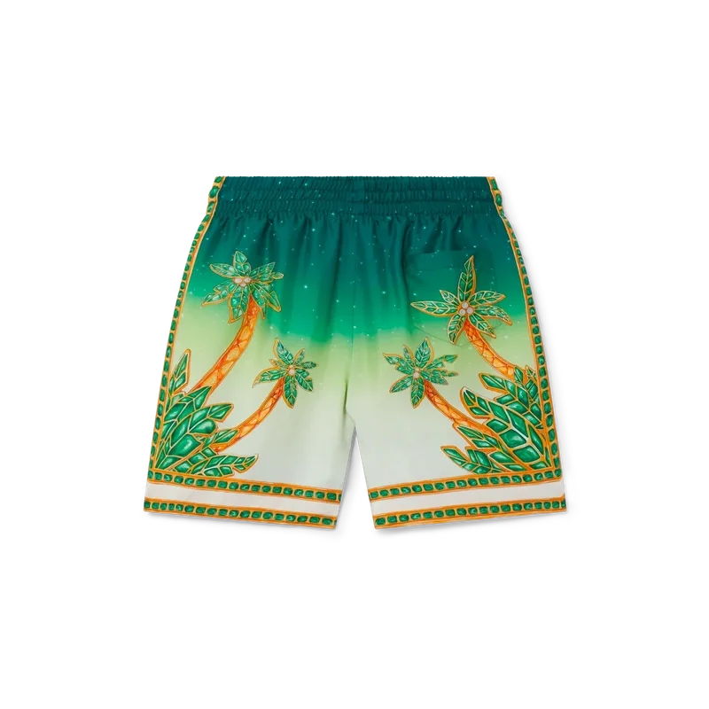 Die Joyaux D’afrique Seidenshorts sind ein Modell mit Allover-Print, das saisonale Motive mit Naturbezügen aus Nigeria und den Schmuckdesigns des Hauses kombiniert, vermischt mit unserem traditionellen Tennisclub-Layout. Hergestellt aus Seidentwill mit elastischem Bund, Kordelzug, Seitentaschen und einer Gesäßtasche.