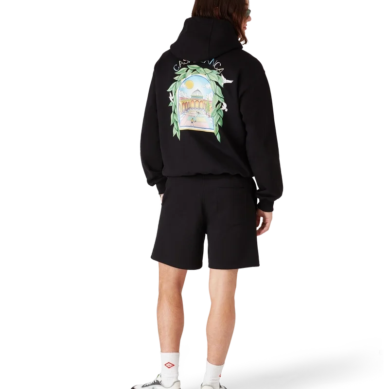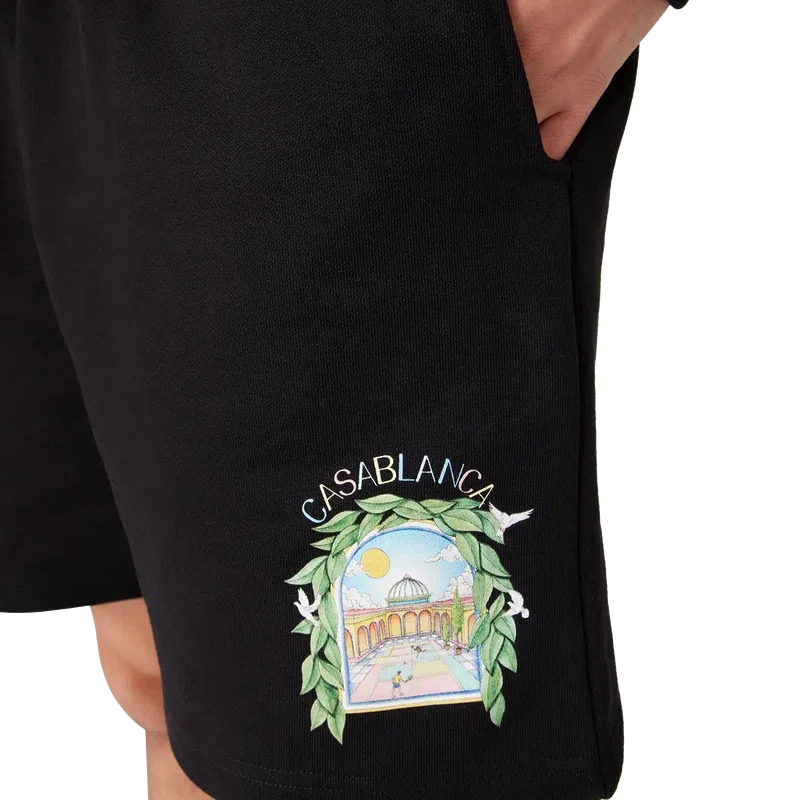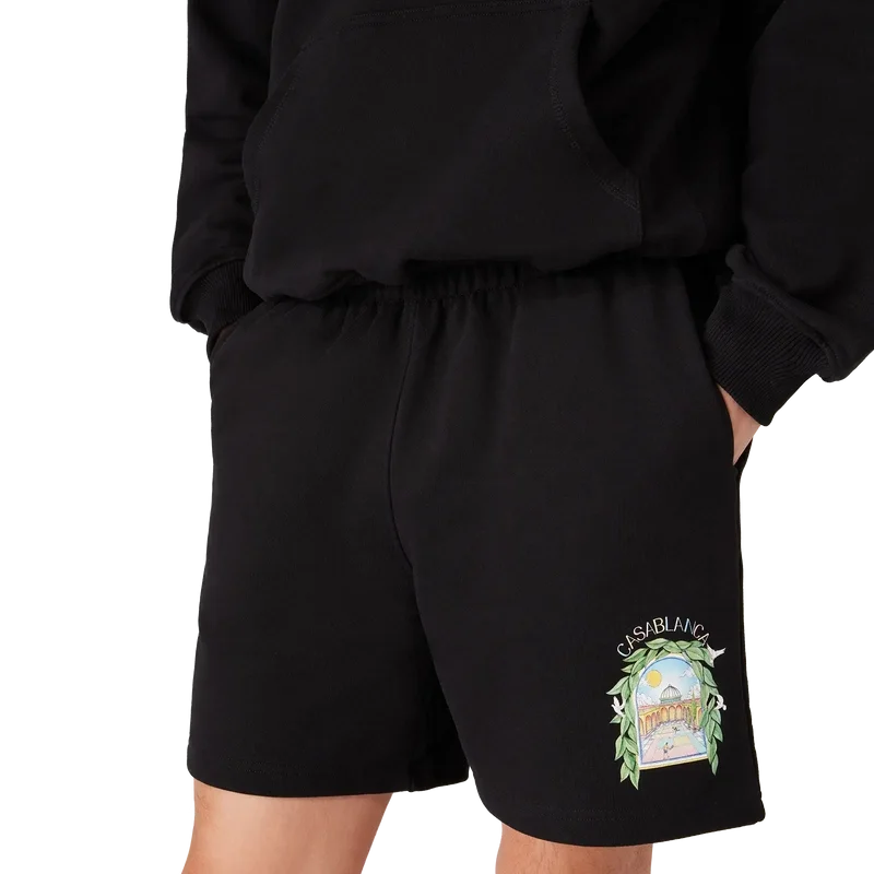 Die L’arche Sweatshorts zeichnen sich durch ein raffiniertes Druckdesign aus, das die saisonalen Kunstwerke des Hauses mit Designelementen wie dem Bogen, der Natur, der Architektur und dem Tennis vereint. Abgerundet werden sie durch einen elastischen Bund, einen Kordelzug mit goldenen Enden, Seitentaschen und eine aufgesetzte Gesäßtasche.