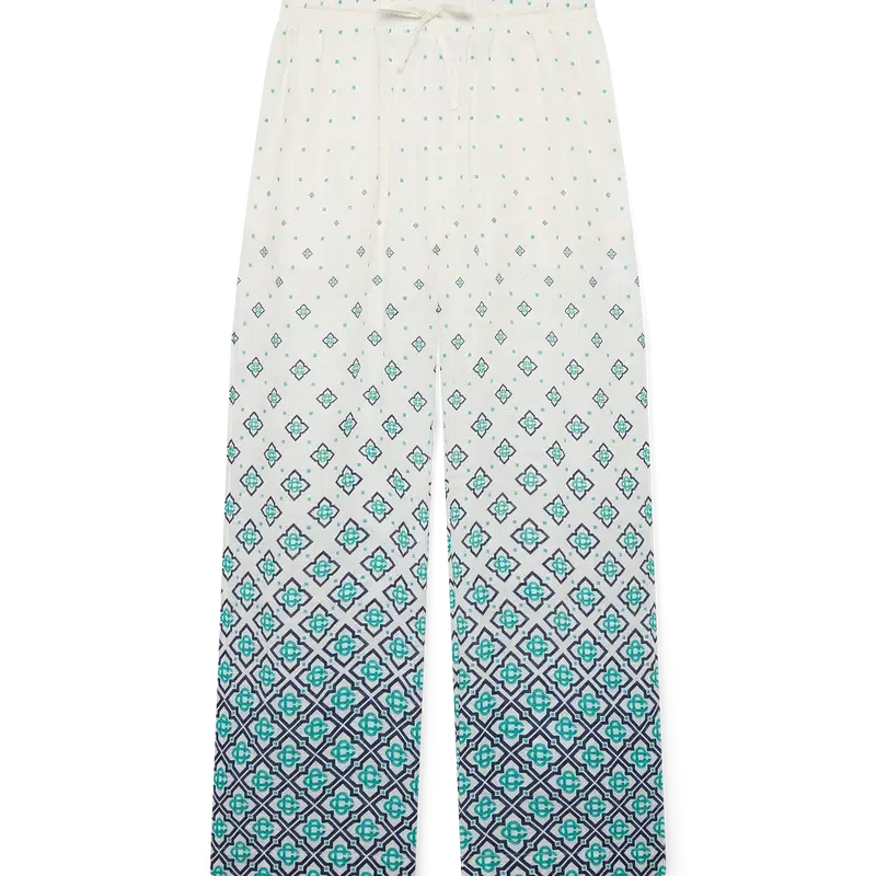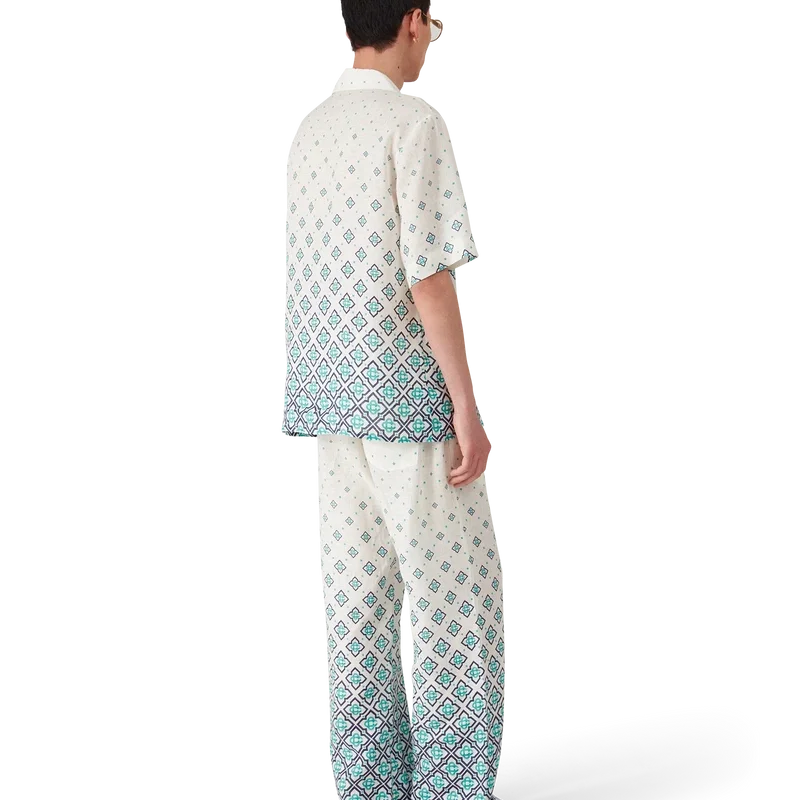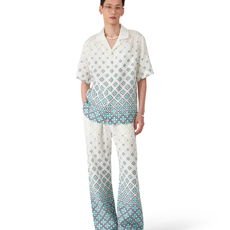 Die Gradient Monogram Leinen Hose ist ein bedrucktes Modell aus Leinenstoff. Sie verfügt über einen elastischen Bund mit Kordelzug, Seitentaschen in den Beinen und eine aufgesetzte Gesäßtasche. Sie ist dazu gedacht, zusammen mit dem passenden Gradient Monogram Leinen Hemd getragen zu werden.