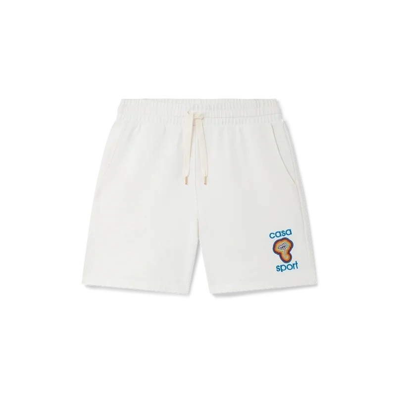 Die cremefarbenen, bestickten Mind Vibrations Sweatshorts zeigen ein saisonales Motiv, inspiriert von der Heilkraft der Erde und der Fähigkeit der Natur, den Geist zu heilen. Die Shorts aus 100 % Bio-Baumwolle reichen bis über das Knie und sind mit einem Kordelzug mit goldenen Enden sowie Seitentaschen versehen.