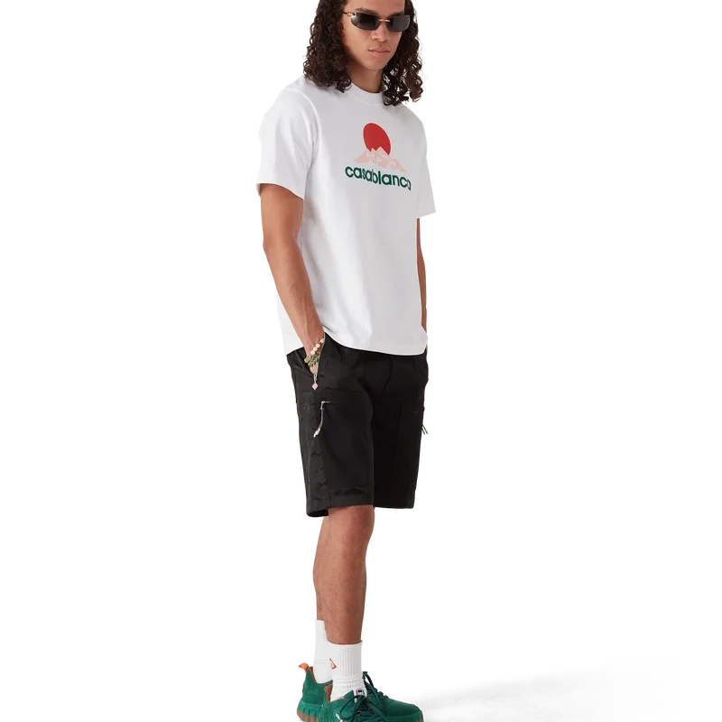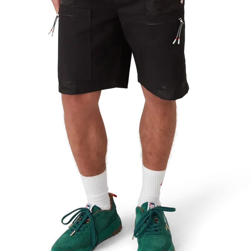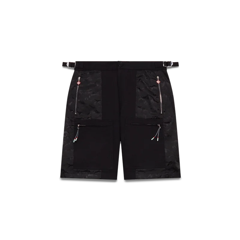 Die Nylon Mountain Camo Cargo-Shorts sind ein knielanges Modell aus Jacquard-Nylon und Baumwollstoff. Ausgestattet mit schrägen aufgesetzten Taschen mit vertikalen Reißverschlüssen und den für das Haus typischen Reißverschlusslaschen mit Diamant-Logo, einem Futter, aufgesetzten Taschen an den Oberschenkeln mit Reißverschluss und von Bergseilen inspirierten Kordelzuglaschen, aufgesetzten Gesäßtaschen, einem Reißverschluss und seitlichen Weitenreglern.