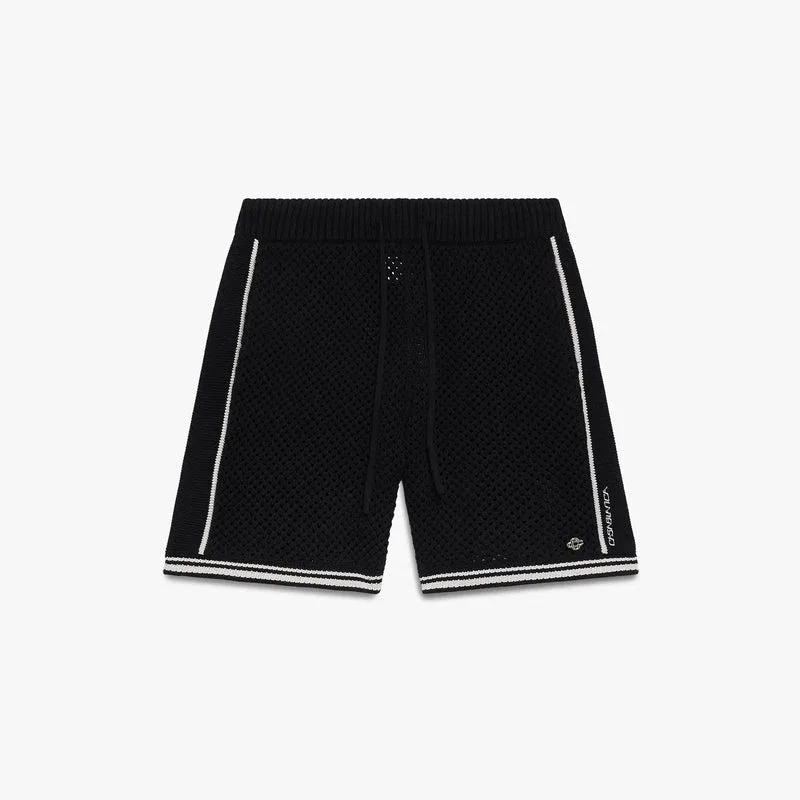 Die schwarzen Mesh-Shorts zeichnen sich durch ein raffiniertes Design aus, mit dem versilberten, ineinander verschlungenen Cc-Logo-Nieten des Hauses am Bein und gestreiften Details an den Seiten. Abgerundet durch einen elastischen Bund, einen Kordelzug, Eingrifftaschen und gestreifte Saumdetails.