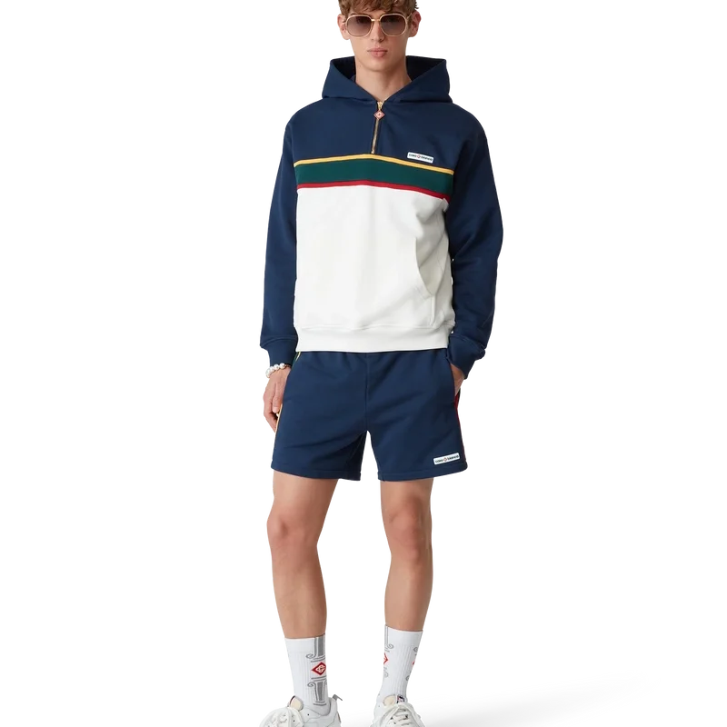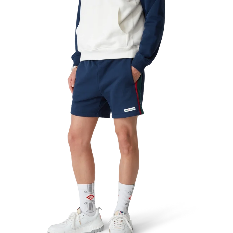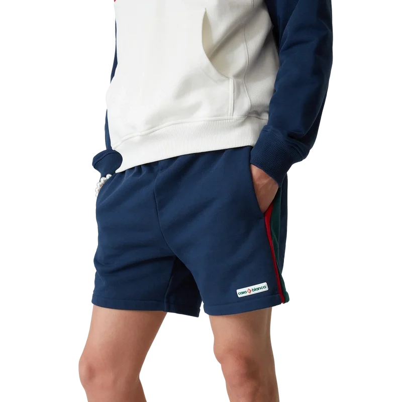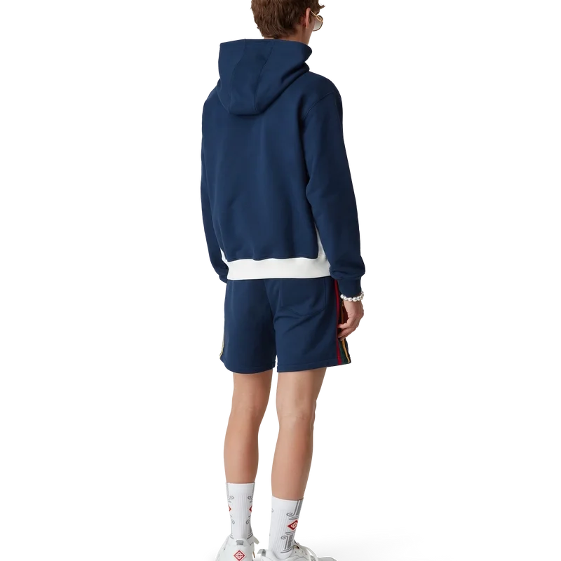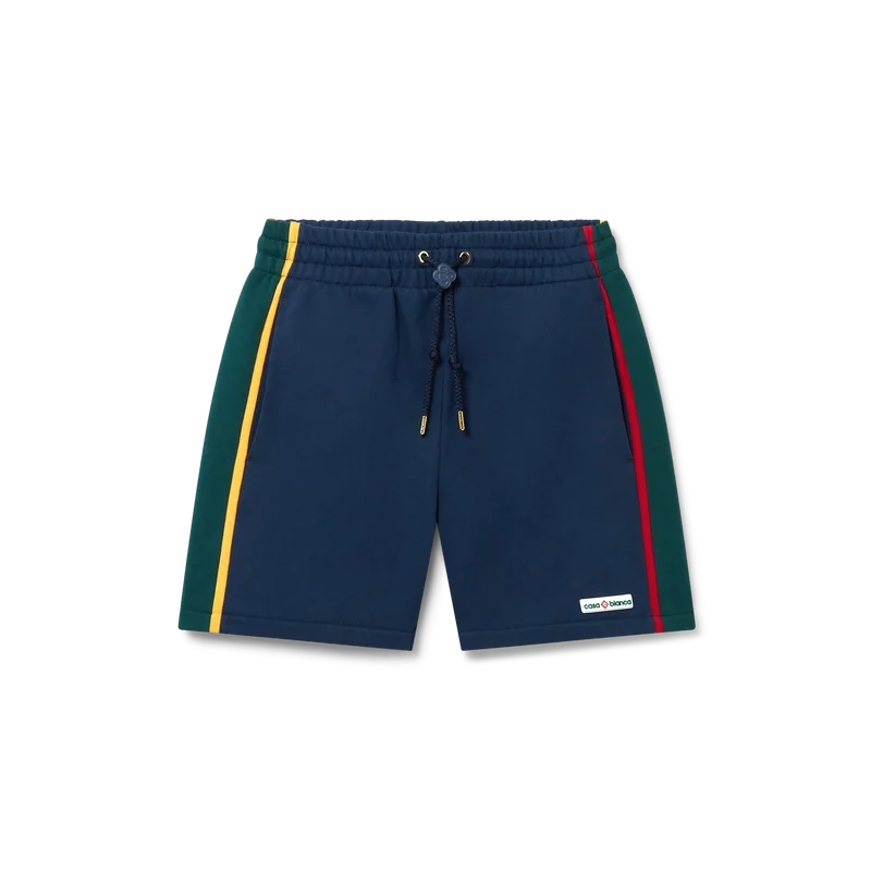 Die Colour-Block-Sweatshorts sind ein Sportbekleidungsdesign, gefertigt aus Bio-Baumwolle und versehen mit dem charakteristischen Patch-Logo des Hauses. Abgerundet durch einen Kordelzug mit goldenen Enden, Seitentaschen in den Nähten, eine Gesäßtasche und kontrastierende Paspeldetails.