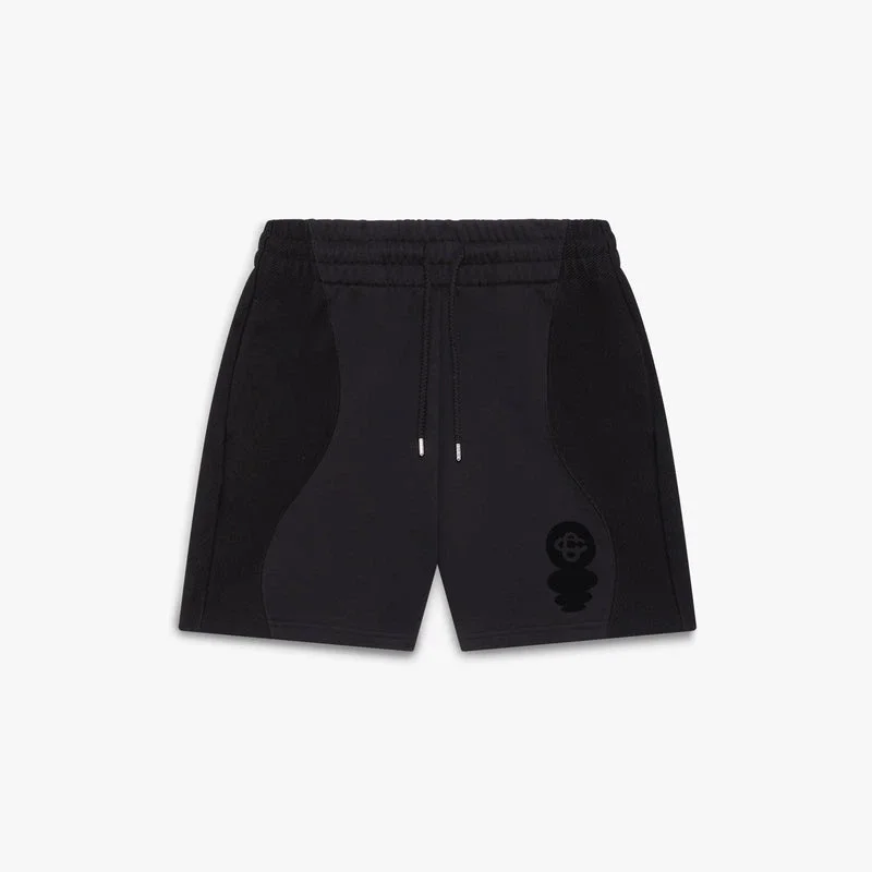 Die Squash-Logo-Sweatshorts mit Flockdruck zeichnen sich durch ein raffiniertes Design aus, das eine Neuinterpretation des klassischen runden CC-Logos des Hauses darstellt. Die verzerrten, strahlenförmig angeordneten Kugeln stellen einen Ball in Bewegung dar und visualisieren den Aufprall beim Auftreffen auf den Boden. Abgerundet durch einen elastischen Bund, einen Kordelzug, ein Futter, Seitentaschen in den Beinen und eine aufgesetzte Gesäßtasche.