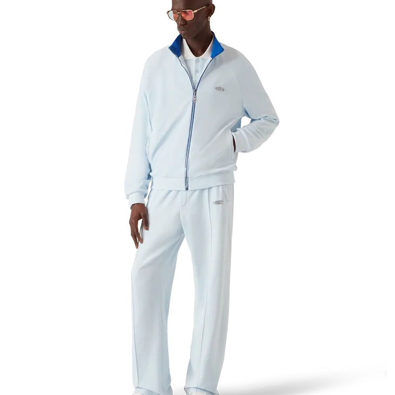 Die Velours-Jogginghose ist ein Sportmodell mit geradem Bein und dem Warped-Logo des Hauses. Mit elastischem Bund, Kordelzug, Paspeltaschen vorne, einer Paspeltasche hinten mit Reißverschluss und Biesen an der Vorderseite.