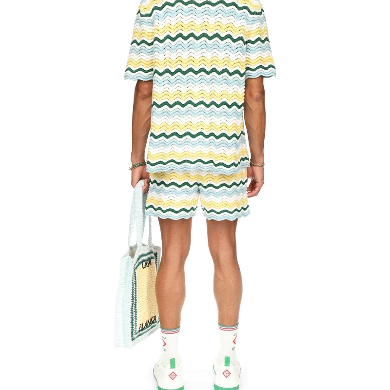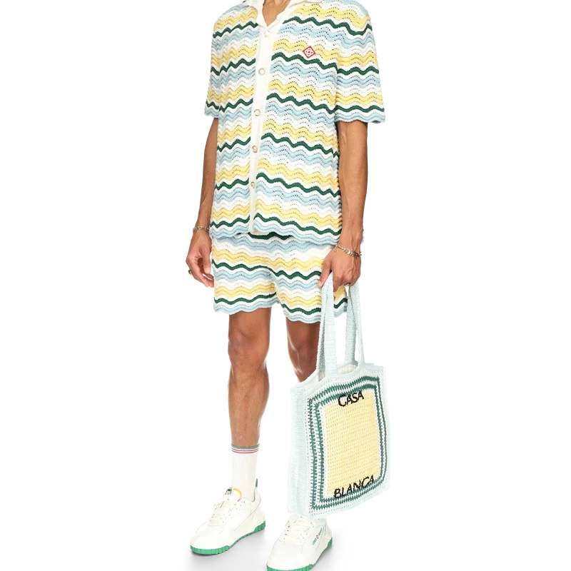 Die Wavy Boucle Shorts sind ein charakteristisches Casablanca-Design aus einem weichen, strukturierten Bouclé-Stoff mit offener Webart. Mit einem innenliegenden Kordelzug, dem Diamant-Logo des Hauses und einem Casablanca-Markenlabel versehen – entworfen, um zu klassischen Passformen getragen zu werden.