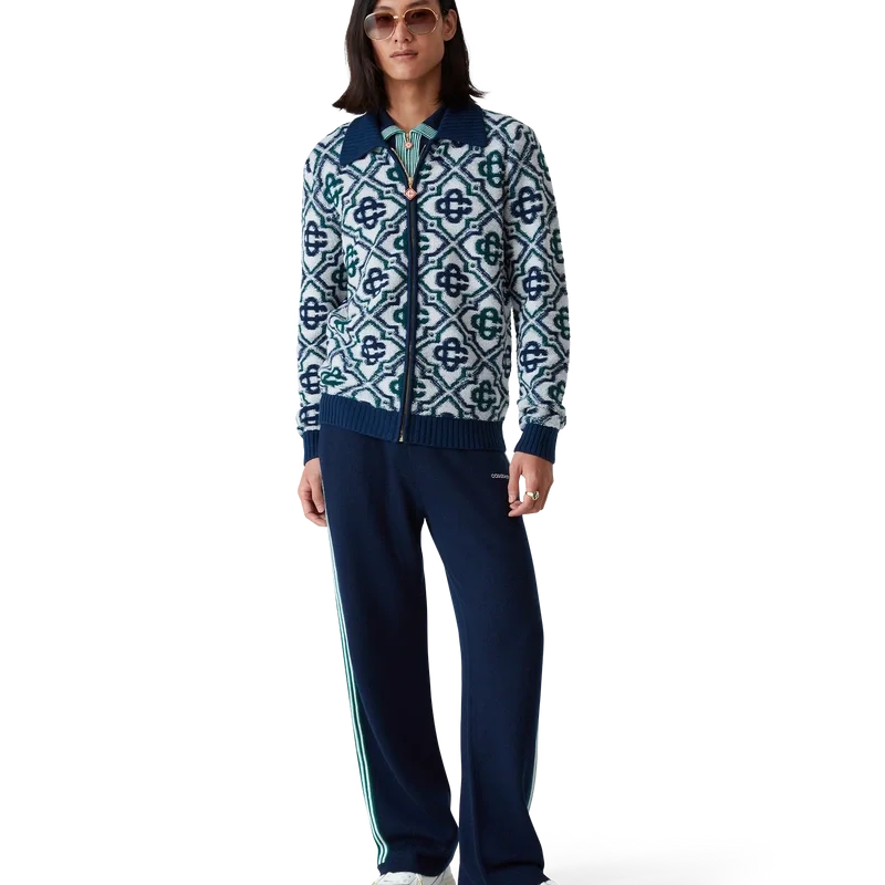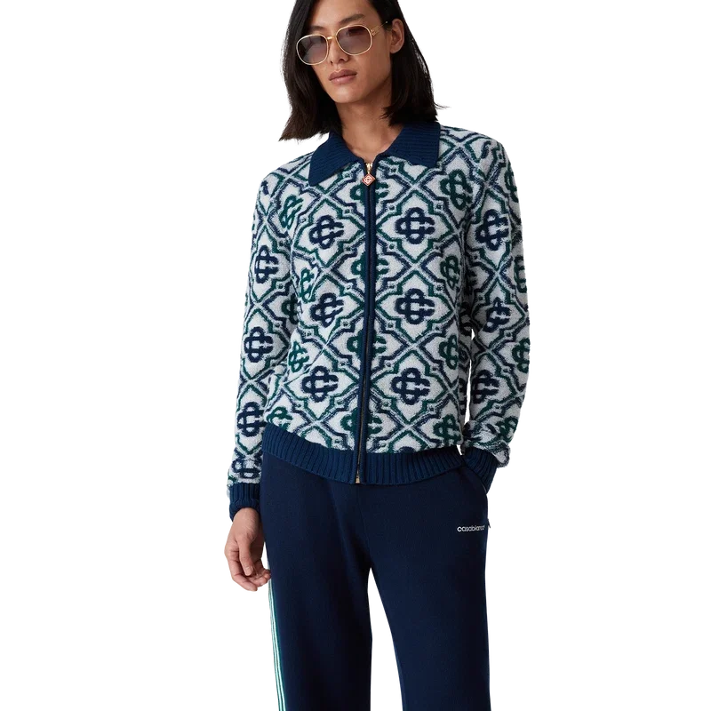 Der Monogram Knit Zip Jumper ist ein klassisches Design mit dem charakteristischen Monogramm des Hauses, gefertigt aus einem Wollmischgewebe. Mit Reißverschluss vorne, kontrastierendem geripptem Kragen, Bündchen, Saum und Seitentaschen – entworfen für eine schmale Passform.