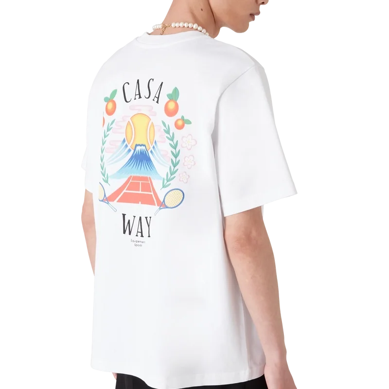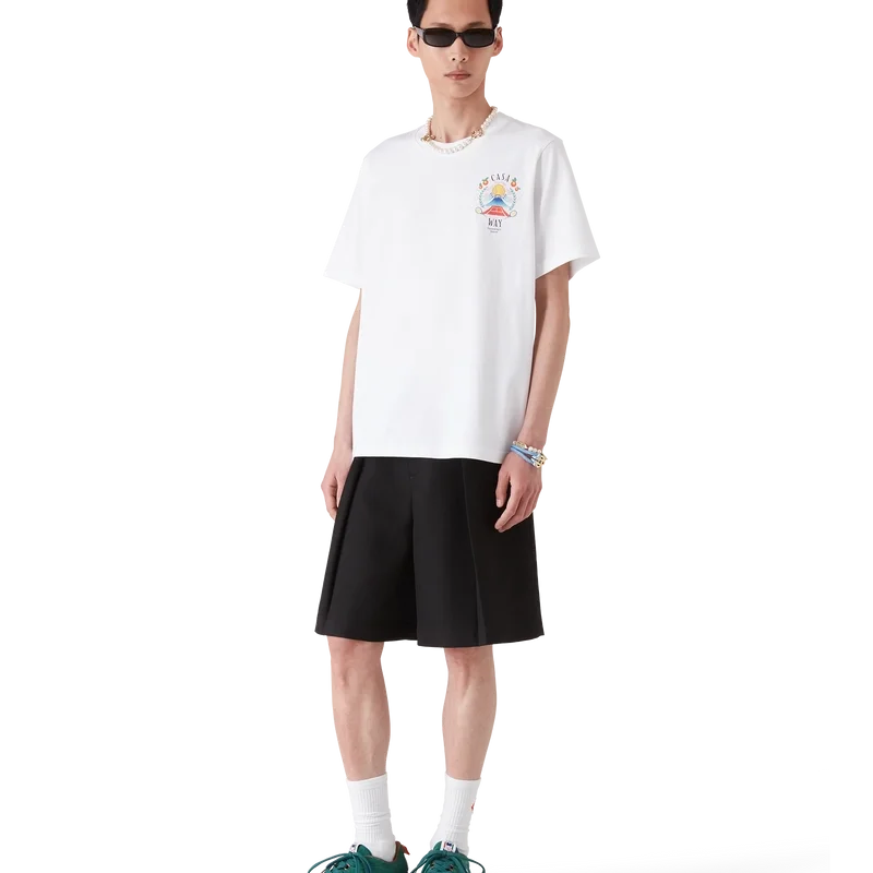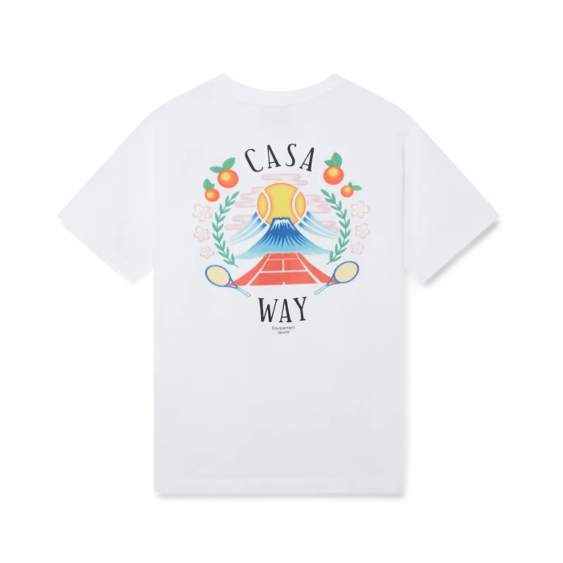 Das Casa Way Mountain T-Shirt ist ein kurzärmeliges Modell aus Bio-Baumwolle und zeigt das saisonale Design des Hauses, das für diese Saison neu interpretiert wurde. Abgerundet durch einen klassischen Rundhalsausschnitt.