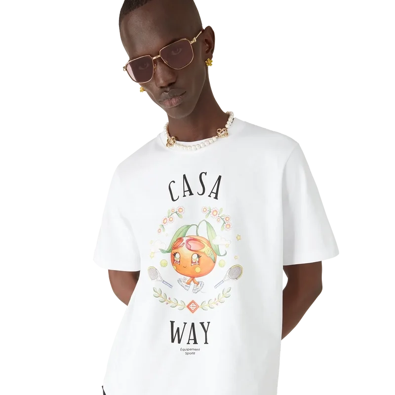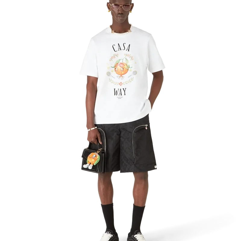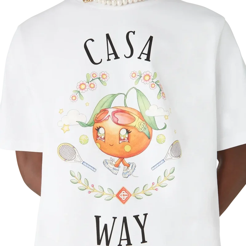 Das Casa Way Orange Mascot T-Shirt ist ein bedrucktes Kurzarm-Design mit saisonalen Motiven des Kawaii Orange – diese Figur ist eine weitere Schlüsselfigur in unserem Universum und trägt Casa-Accessoires, eine Brille und Sneakers. Abgerundet durch einen klassischen Rundhalsausschnitt.