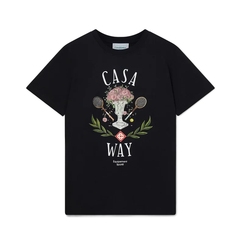 Das Casa Way T-Shirt aus Bio-Baumwolle mit Siebdruck zeigt eine saisonale Interpretation unseres charakteristischen Casa Way-Motivs. Mit klassischem Rundhalsausschnitt, kurzen Ärmeln und Casablanca Paris-Markenlabel, entworfen für eine lockere Passform.