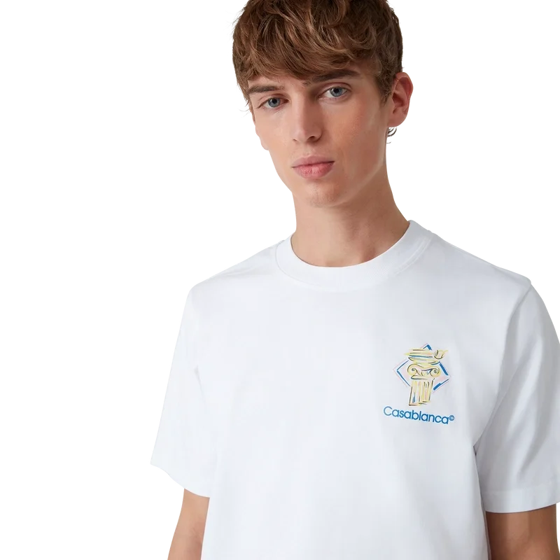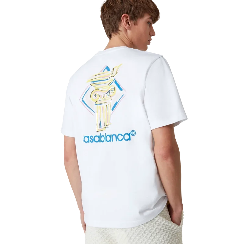 Das Diamond Column T-Shirt ist ein kurzärmeliges, bedrucktes Design aus Bio-Baumwollstoff mit dem für das Label typischen Buntstift-Motiv einer Säule. Abgerundet durch einen klassischen Rundhalsausschnitt und das Casablanca-Logo.