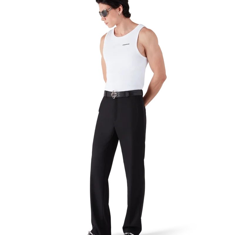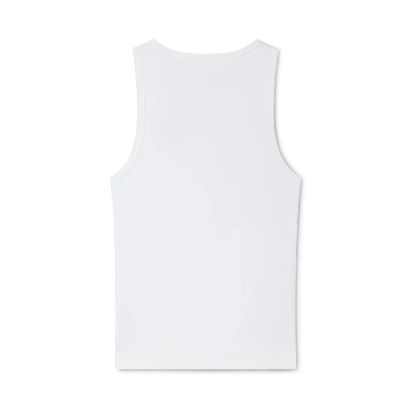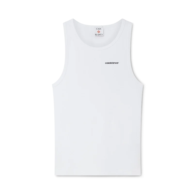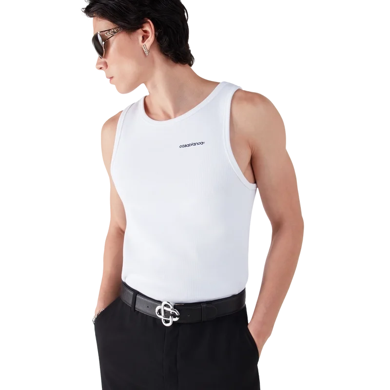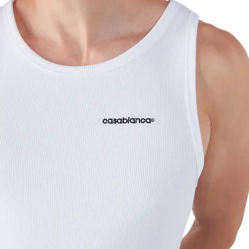 Das gerippte Tanktop ist ein raffiniertes, ärmelloses, figurbetontes Design. Es ist mit dem Casablanca-Logo, einem U-Ausschnitt und gerippten Details an Halsausschnitt und Armausschnitten versehen.