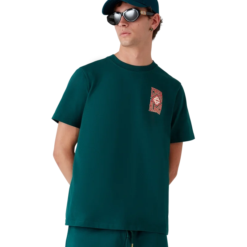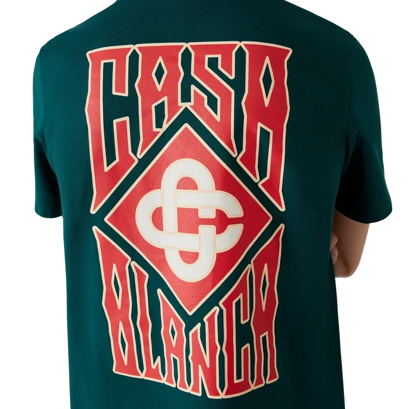 Das Gothic Casa Way T-Shirt ist ein bedrucktes Kurzarm-Modell aus Bio-Baumwolle und zeigt das gestapelte Logo des Hauses in gotischer Schrift sowie das charakteristische Diamant-Logo. Abgerundet durch einen klassischen Rundhalsausschnitt.