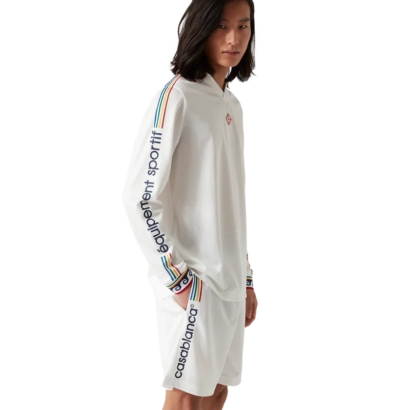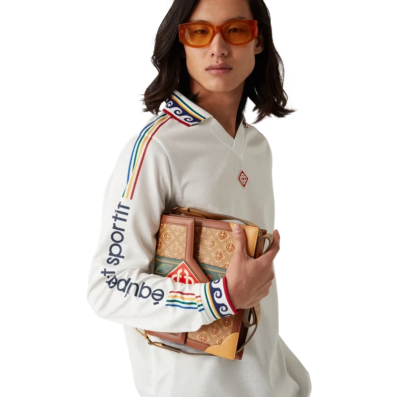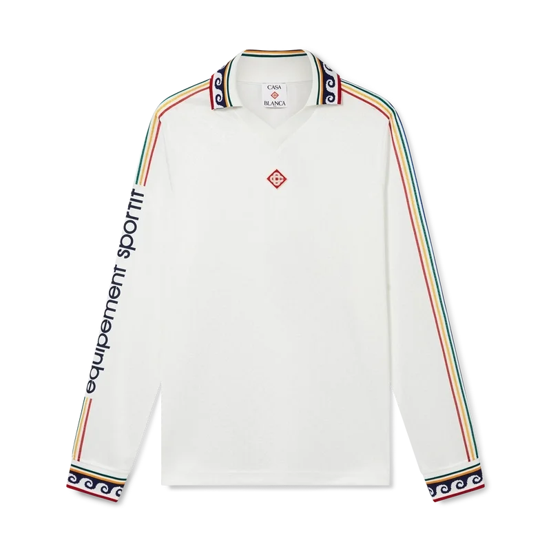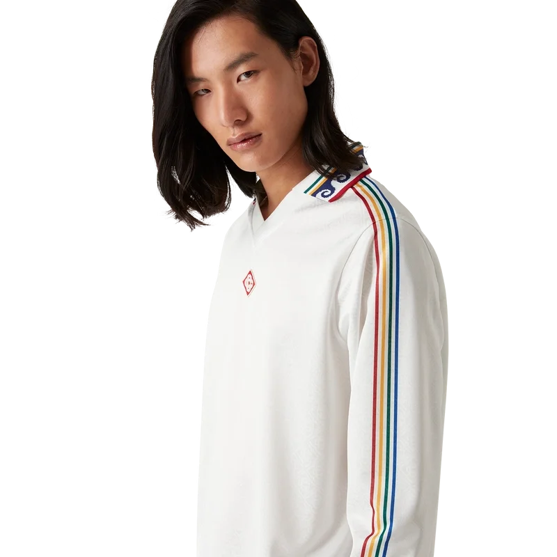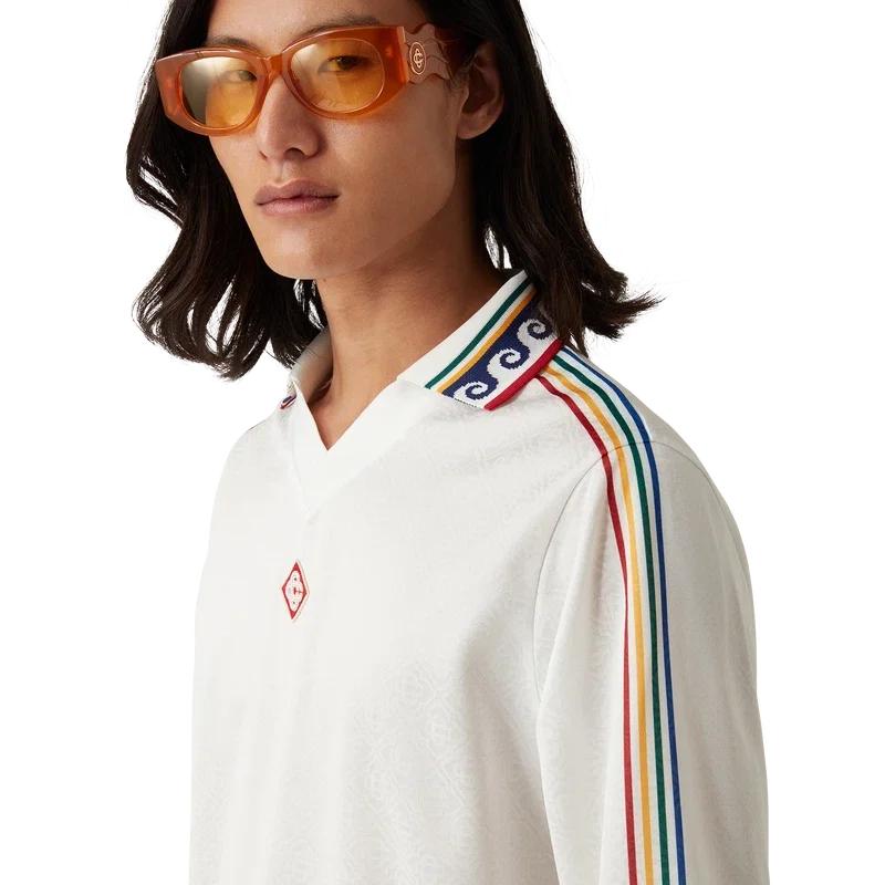 Das Jacquard-Monogramm-Fußball-Hemd ist ein Langarm-Hemd mit Allover-Print, das das ineinander verschlungene Cc-Monogramm des Hauses zeigt und aus einem Jacquard-Monogramm-Stoff gefertigt ist. Abgerundet durch einen gerippten Kragen und Ärmelbündchen, Casablanca-Branding an den Ärmeln und ein charakteristisches Diamond Monogram-Logo am Kragen.