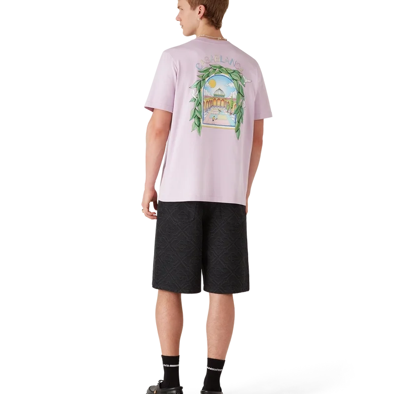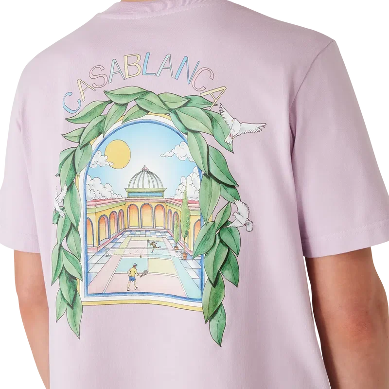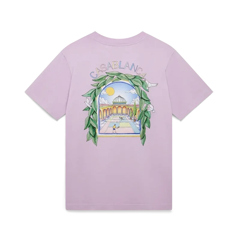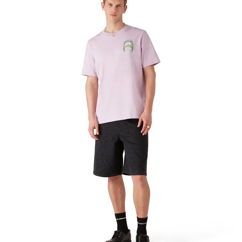 Das L’arche De Tennis T-Shirt ist ein raffiniertes, bedrucktes Kurzarm-Design mit dem saisonalen Artwork des Hauses und Designelementen wie dem Bogen, der Natur, der Architektur und dem Tennis. Abgerundet wird es durch einen klassischen Rundhalsausschnitt und eine lockere Silhouette.