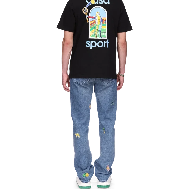 Das Le Jeu Colora T-Shirt ist ein bedrucktes Design, inspiriert von afro-kubistischen Kunstwerken, geprägt von kühnen Malereien und Kubismus, wie man sie in Nigeria findet. Hergestellt aus Bio-Baumwolle, mit dem Hausdesign auf dem Rücken und der linken Brustseite, abgerundet durch einen klassischen Rundhalsausschnitt.