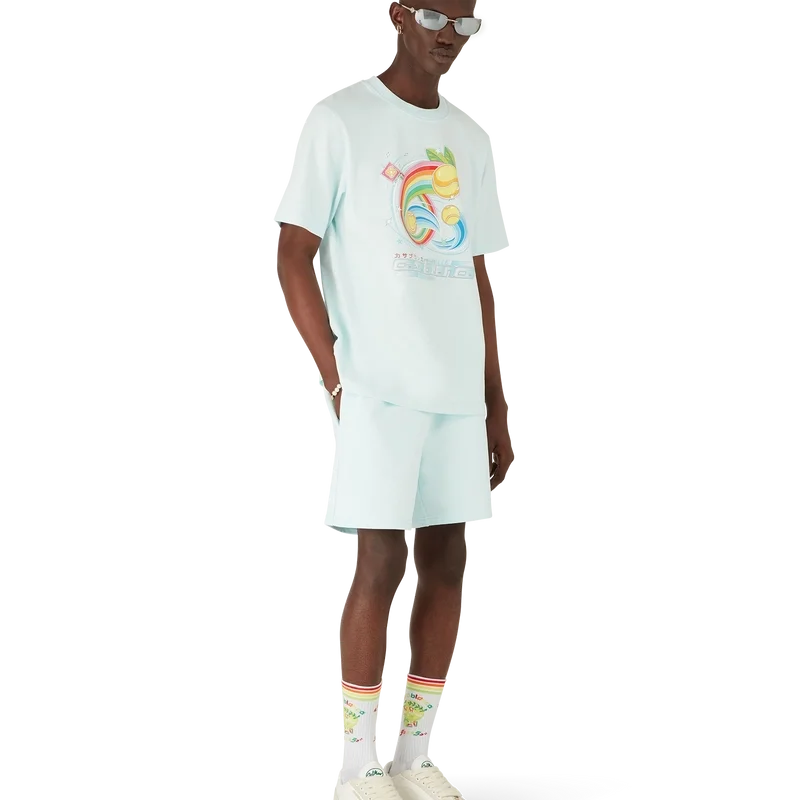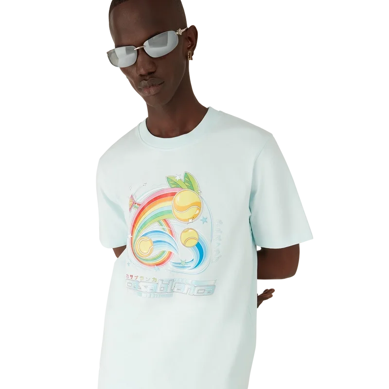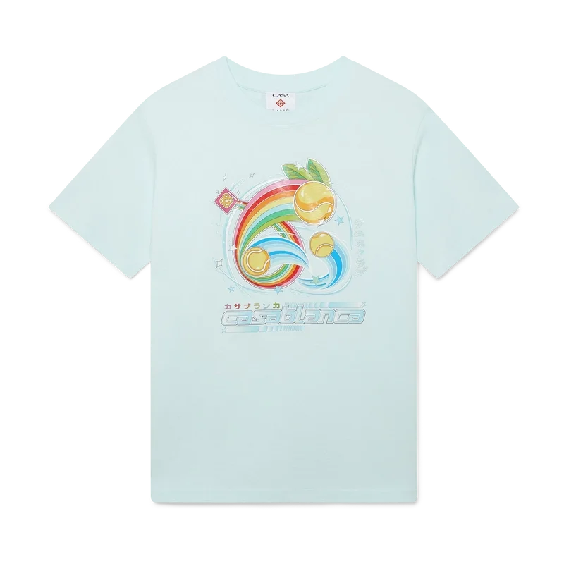 Das Manga Tennis Ball T-Shirt ist ein kurzärmeliges Modell aus Bio-Baumwolle mit saisonalen Motiven, das weiterhin die Welt von Kawaii und Manga erkundet und dabei mit der Ikonografie von Casablanca spielt, indem es Tennisbälle als Orangen darstellt – für einen lustigen Twist. Abgerundet durch einen klassischen Rundhalsausschnitt.