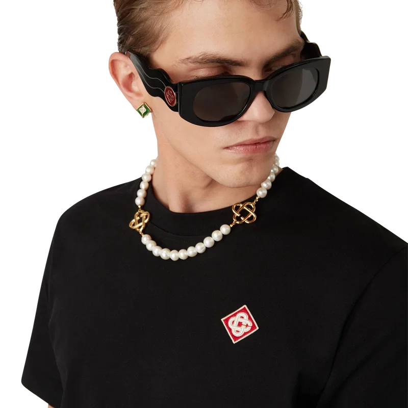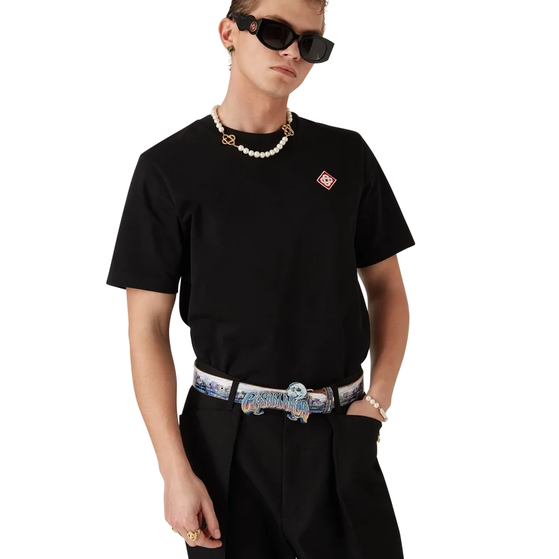 Das T-Shirt mit Diamant-Logo ist ein kurzärmeliges Modell aus Bio-Baumwolle, das auf der linken Brustseite mit dem charakteristischen Diamant-Logo-Aufnäher des Hauses verziert ist. Mit klassischem Rundhalsausschnitt und einem Casablanca-Markenlabel.