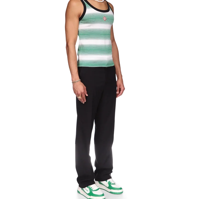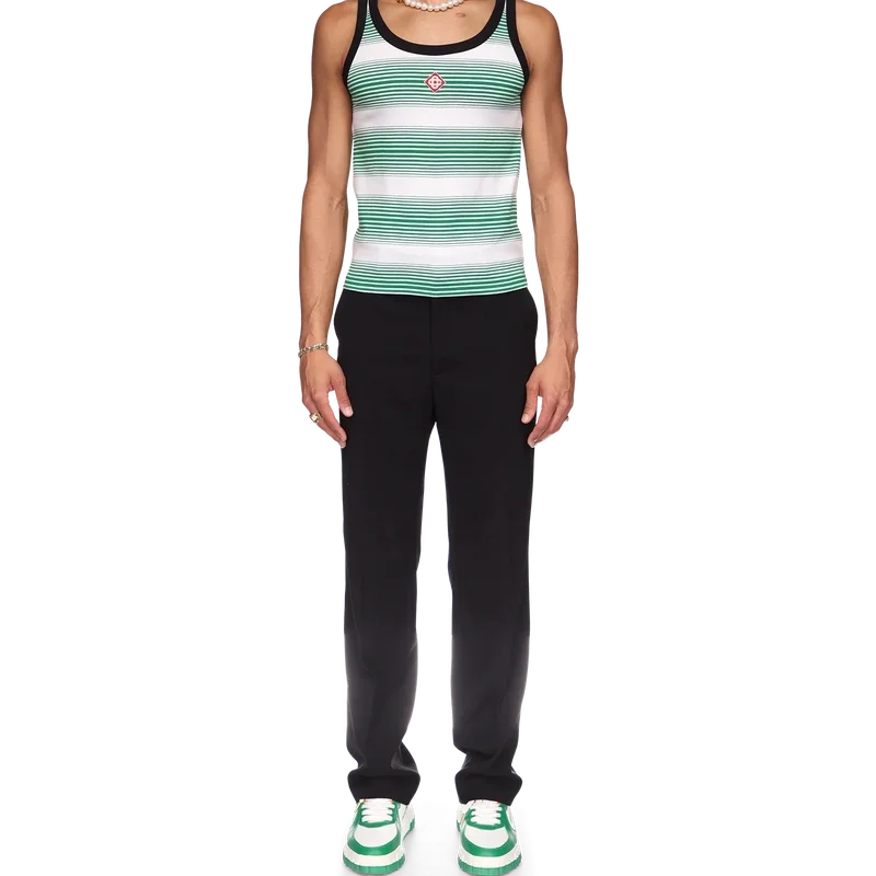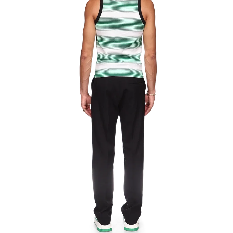 Das Tanktop mit Farbverlaufsstreifen ist ein klassisches Design aus garngefärbtem Bio-Baumwollstoff, inspiriert von den Farben der nigerianischen Flagge. Mit U-Ausschnitt, kontrastierendem Rippkragen und Rippbündchen an den Armausschnitten.