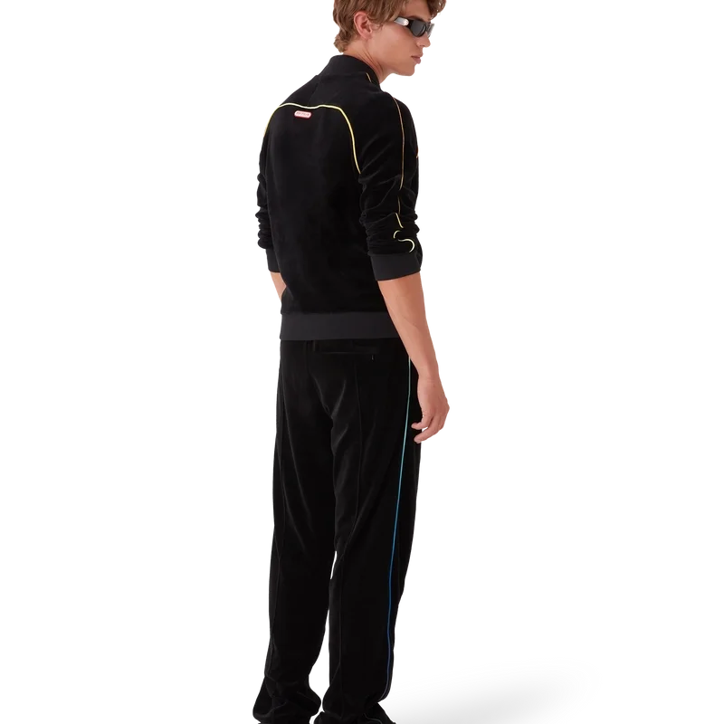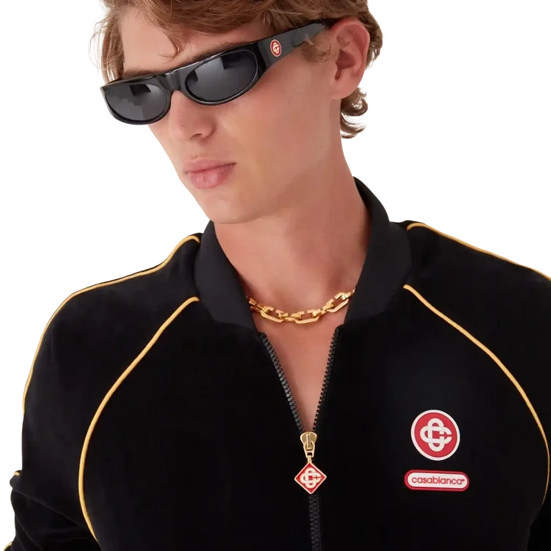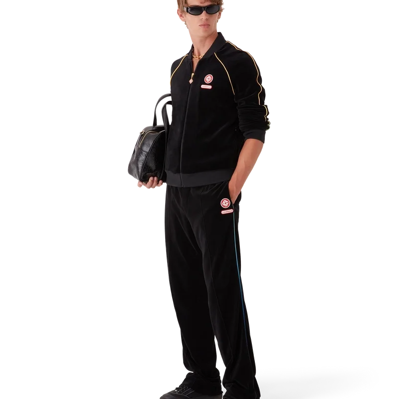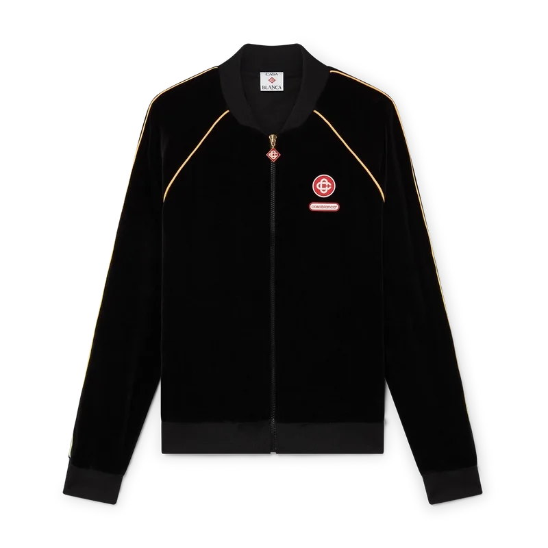 Die Trainingsjacke aus Velours mit Farbverlaufspaspelierung ist ein langärmeliges Modell mit dem ineinander verschlungenen Cc-Logo des Hauses und einem Casablanca-Logo-Aufnäher.